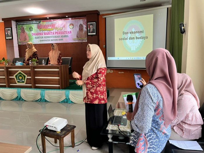 Batang Hari – Kepala Madrasah Tsanawiyah Negeri (MTsN) 5 Batang Hari turut menghadiri kegiatan Pertemuan Rutin Dharma Wanita Persatuan (DWP) Kantor Kementerian Agama Kabupaten Batang Hari yang digelar di aula Kankemenag Batang Hari.