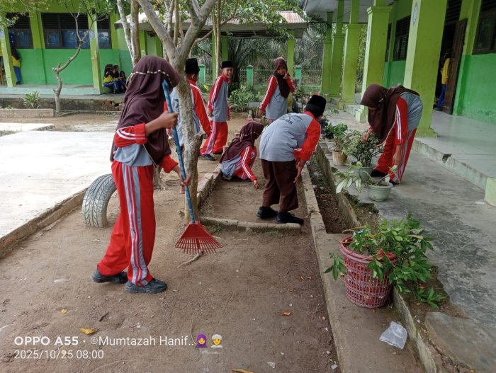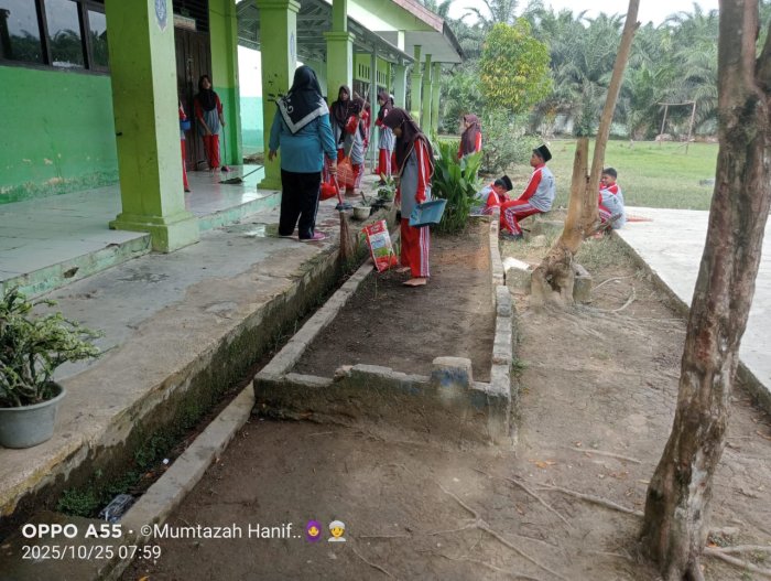 Batang Hari — Dalam rangka menciptakan lingkungan belajar yang bersih, hijau, dan nyaman, seluruh siswa MTsN 5 Batang Hari melaksanakan kegiatan gotong royong memperbarui taman kelas pada Sabtu (25/20/25). Kegiatan ini dikoordinir langsung oleh masing-masing wali kelas dan diikuti dengan penuh antusias oleh seluruh peserta didik.