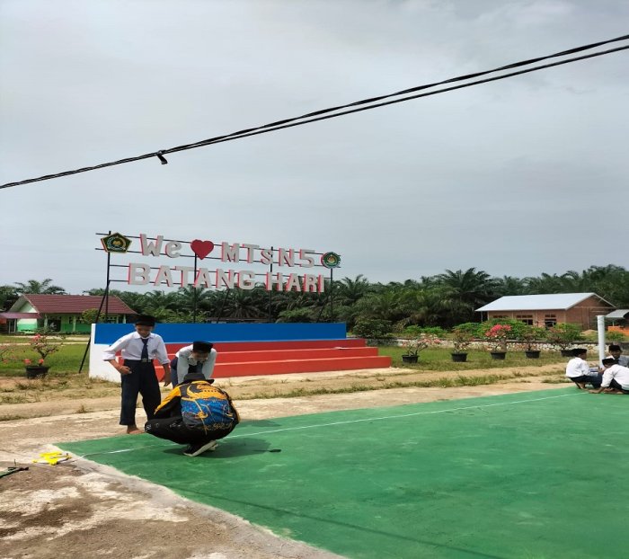 Batang Hari – Guru Pendidikan Jasmani, Olahraga, dan Kesehatan (PJOK) MTsN 5 Batang Hari menunjukkan semangat dan dedikasi tinggi dalam meningkatkan sarana olahraga di madrasah. Pada Selasa, 28 Oktober 2025, guru PJOK langsung menyelesaikan penataan lapangan bulu tangkis di area madrasah.