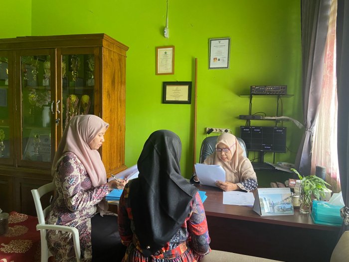 Batang Hari — Kepala MTsN 5 Batang Hari, Dra. Nurhayana, meninjau kesiapan bahan Penilaian Kinerja Kepala Madrasah (PKKM) tahun 2025 pada bidang supervisi guru dan tenaga kependidikan, Kamis (13/11/2025). Dalam kegiatan ini, beliau diwakili oleh Ketua Bidang Supervisi Guru dan Tenaga Kependidikan, Ibu Meria Elina, bersama satu anggota, Ibu Anita Zulhayani.
