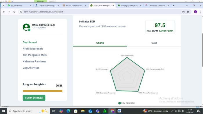 Melalui kerja terpadu dan koordinasi yang baik, MTsN 5 Batang Hari optimistis dapat menghasilkan laporan EDM yang komprehensif sebagai dasar peningkatan kualitas pendidikan di tahun mendatang.(Humas)
