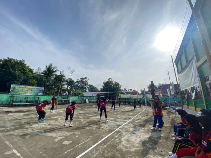 Batang Hari � Tim voli putri MTsN 5 Batang Hari kembali menorehkan prestasi gemilang pada ajang Pekan Olahraga dan Seni (PORSENI) dalam rangka memperingati Hari Amal Bakti (HAB) Kementerian Agama Kabupaten Batang Hari ke-80. Dalam pertandingan final yang berlangsung penuh ketegangan, tim voli putri MTsN 5 Batang Hari berhasil menumbangkan tim kuat dari MTsN 6 Batang Hari dan memastikan diri sebagai Juara 1. Selasa (9/12/25)