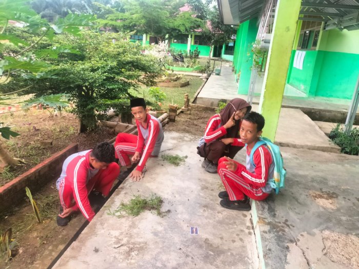 Batang Hari – Menjelang pelaksanaan apel pagi, para siswa MTsN 5 Batang Hari melaksanakan kegiatan gotong royong membersihkan lingkungan madrasah sebagai bagian dari persiapan menghadapi Penilaian Kinerja Kepala Madrasah (PKKM). Kegiatan berlangsung pada Kamis pagi dengan penuh antusias dan kekompakan.(11/12/25)