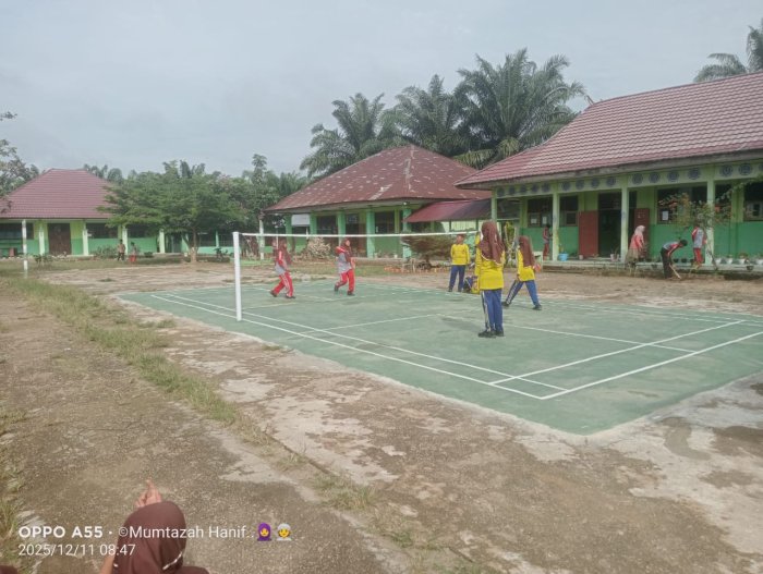 Batang Hari, 12 Desember 2025 — Kegiatan classmeeting MTsN 5 Batang Hari memasuki hari kedua dengan mempertandingkan cabang badminton ganda putri. Pertandingan yang digelar di lapangan madrasah berlangsung penuh antusias, riuh dukungan teman-teman, serta menampilkan permainan yang seru dan sengit.