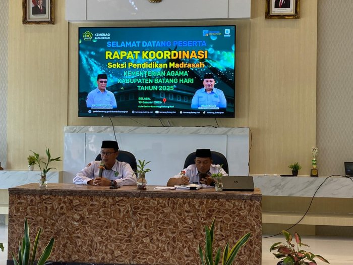 Batang Hari (MTsN 5 Batang Hari) — Kepala MTsN 5 Batang Hari, Dra. Nurhayana, menghadiri kegiatan yang diselenggarakan oleh Kantor Kementerian Agama Kabupaten Batang Hari berdasarkan undangan resmi yang diterima oleh pihak madrasah. Kegiatan tersebut dilaksanakan pada hari Selasa bertempat di ruang aula Kantor Kementerian Agama Kabupaten Batang Hari.