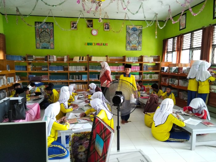Batang Hari — Guru Bahasa Indonesia MTsN 5 Batang Hari memanfaatkan perpustakaan madrasah sebagai media pembelajaran bagi siswa kelas VIII C. Kegiatan pembelajaran ini bertujuan untuk meningkatkan minat baca sekaligus mengoptimalkan fungsi perpustakaan sebagai sumber belajar yang edukatif dan menyenangkan.
