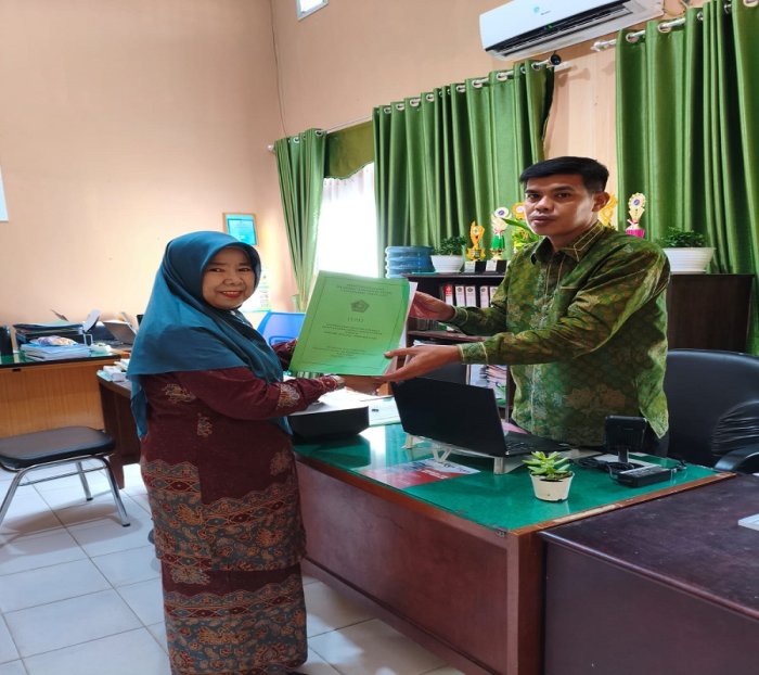 Batang Hari — Kepala MTsN 5 Batang Hari menyerahkan sejumlah laporan penting kepada Kantor Kementerian Agama (Kankemenag) Kabupaten Batang Hari melalui Seksi Pendidikan Madrasah (Penmad), Kamis (22/1/2026).