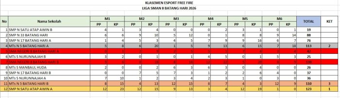 Sejak awal pertandingan, kedua tim esport MTsN 5 Batang Hari menunjukkan performa yang solid dan strategi permainan yang matang. Mereka mampu bersaing dengan tim-tim lain hingga akhirnya berhasil mengamankan posisi runner-up dan peringkat ketiga.