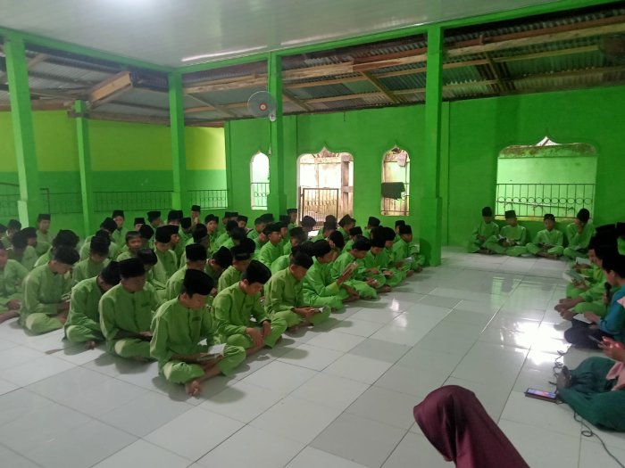 Kegiatan yang dilaksanakan dengan penuh khidmat tersebut menjadi salah satu program pembinaan karakter religius bagi peserta didik. Para siswa tampak duduk rapi mengikuti rangkaian kegiatan dengan membaca Surah Yasin, melantunkan tahlil, serta memanjatkan doa bersama untuk keberkahan dan keselamatan.