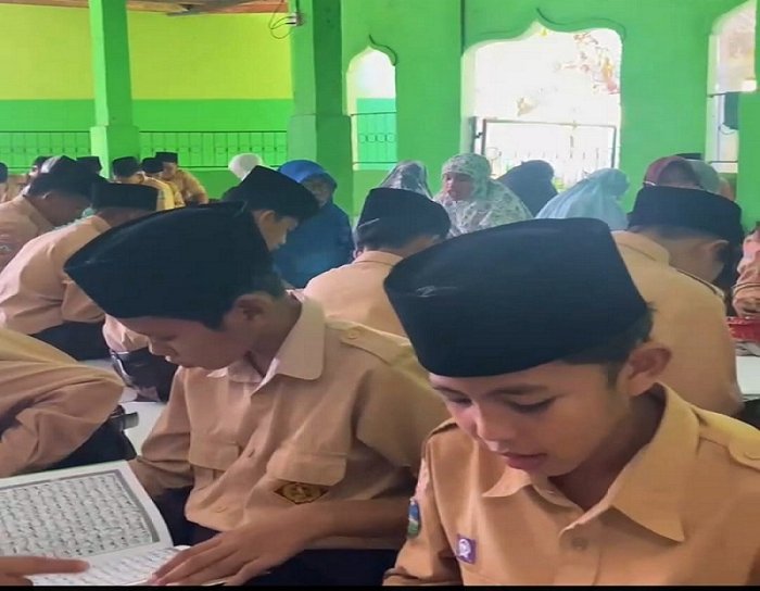 Batang Hari --- MTsN 5 Batang Hari kembali melaksanakan rangkaian kegiatan pesantren kilat Ramadhan hari kedua dengan menggelar kegiatan 1 Hari Khatam Al-Qur’an. Kegiatan ini dilaksanakan di lingkungan madrasah dan diikuti oleh seluruh siswa dengan penuh semangat dan kekhusyukan. Kamis (12/3/2026)