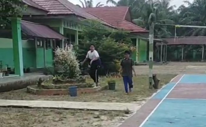 Dengan penuh semangat, para siswa terlihat kompak membawa peralatan kebersihan seperti sapu, cangkul, dan parang untuk membersihkan rumput liar serta sampah yang ada di sekitar area tersebut. Wali kelas turut mendampingi dan memberikan arahan agar kegiatan berjalan dengan tertib dan efektif.