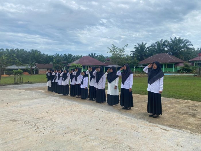 Batang Hari, Senin (6/4/2026) — MTsN 5 Batang Hari tetap melaksanakan upacara bendera rutin pada hari Senin meskipun tanpa kehadiran siswa kelas IX. Upacara berlangsung dengan khidmat di halaman madrasah, diikuti oleh seluruh siswa kelas VII dan VIII, serta dewan guru dan tenaga kependidikan.