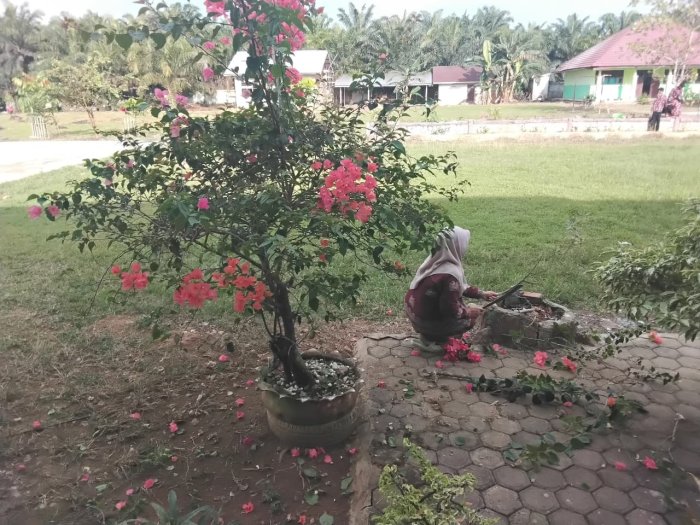 Batang Hari, 8 April 2026 — Ketua Panitia Madrasah Asri memanfaatkan waktu luangnya dengan melakukan kegiatan positif, yaitu memperindah taman madrasah. Kegiatan ini dilakukan dengan merapikan dan menata kembali bunga-bunga yang ada di lingkungan madrasah, Rabu (8/4/26).