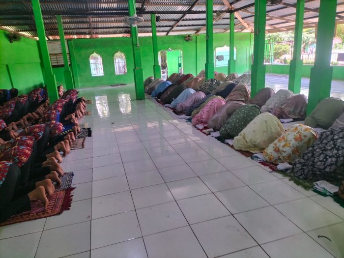 Pelaksanaan salat berjamaah berlangsung tertib dan lancar di musala madrasah. Para siswa tampak antusias mengikuti setiap rangkaian ibadah, mulai dari persiapan hingga doa bersama setelah salat. Suasana khidmat sangat terasa, mencerminkan kesungguhan seluruh peserta dalam menjalankan ibadah.