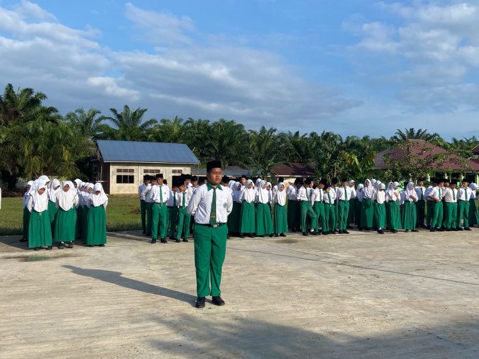Batang Hari, Senin (13/4/2026) — Madrasah Tsanawiyah Negeri (MTsN) 5 Batang Hari melaksanakan upacara bendera rutin pada Senin pagi di halaman madrasah. Kegiatan ini diikuti oleh seluruh siswa, guru, dan tenaga kependidikan dengan penuh khidmat.