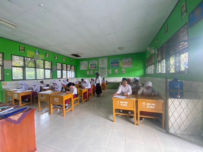 Selama pelaksanaan tes, suasana terlihat tertib dan kondusif. Para peserta mengikuti ujian dengan serius di bawah pengawasan panitia dan pengawas ruang. Selain itu, Kepala Madrasah MTsN 5 Batang Hari turut hadir dan mengawasi secara langsung jalannya tes guna memastikan seluruh proses berjalan sesuai dengan prosedur yang telah ditetapkan.